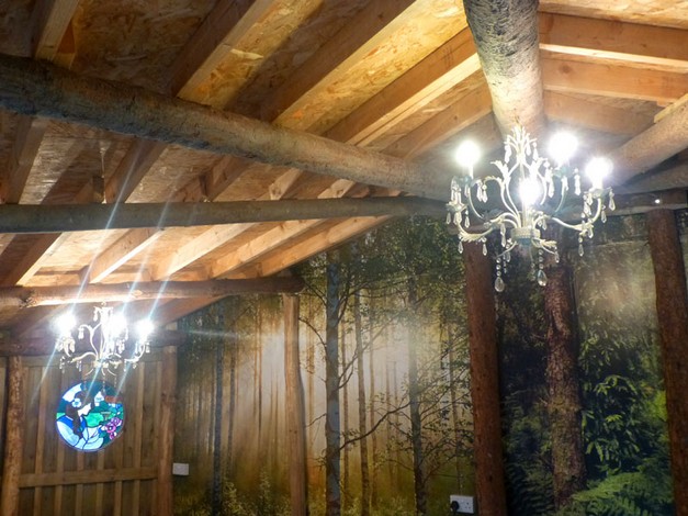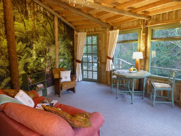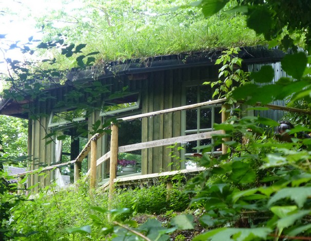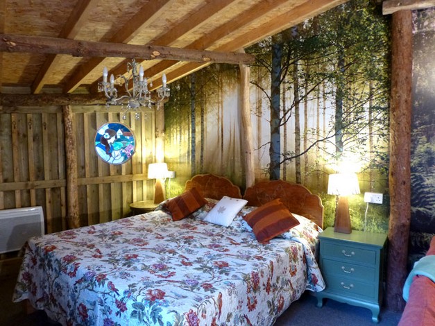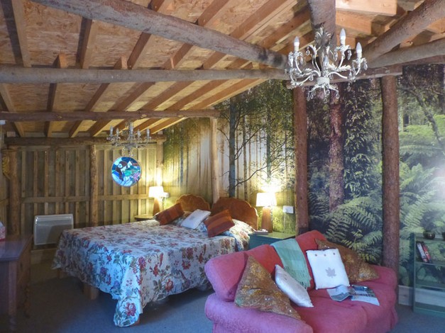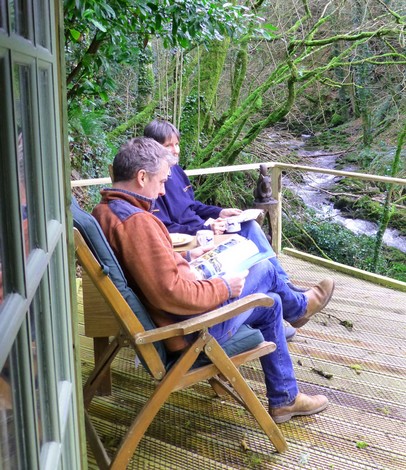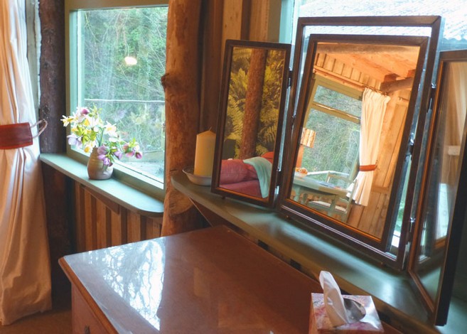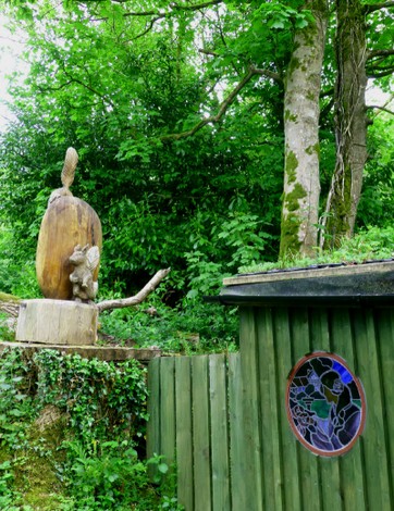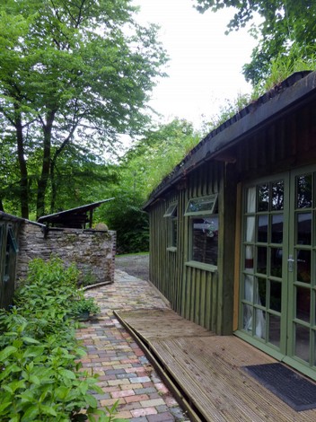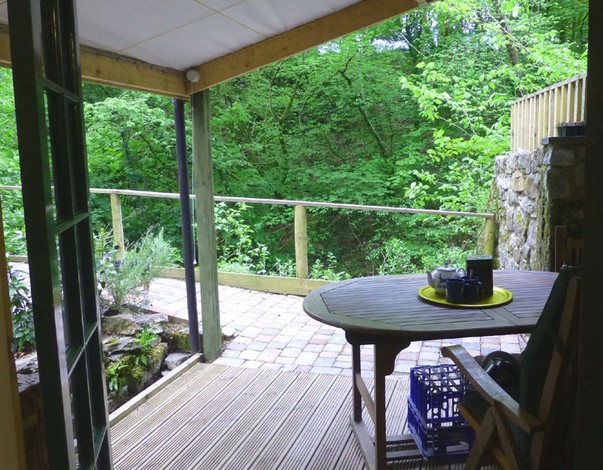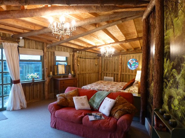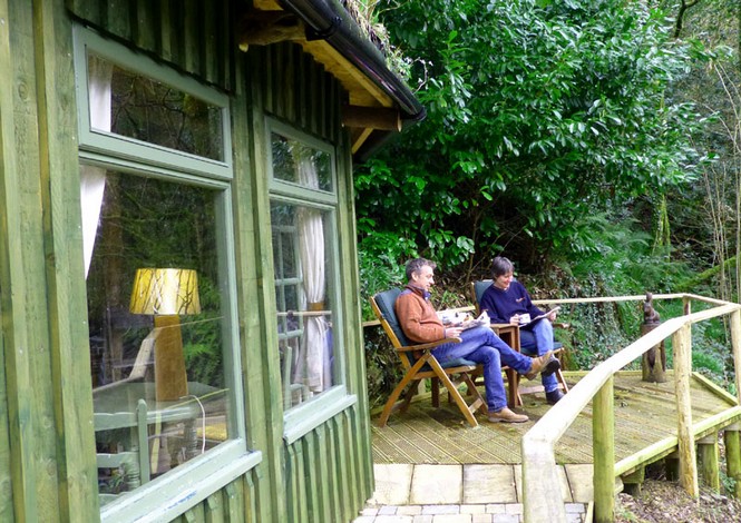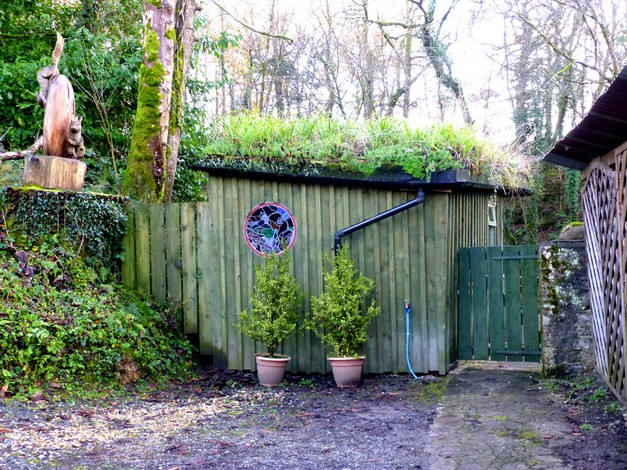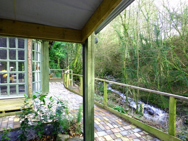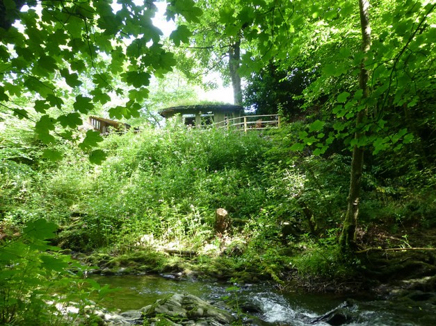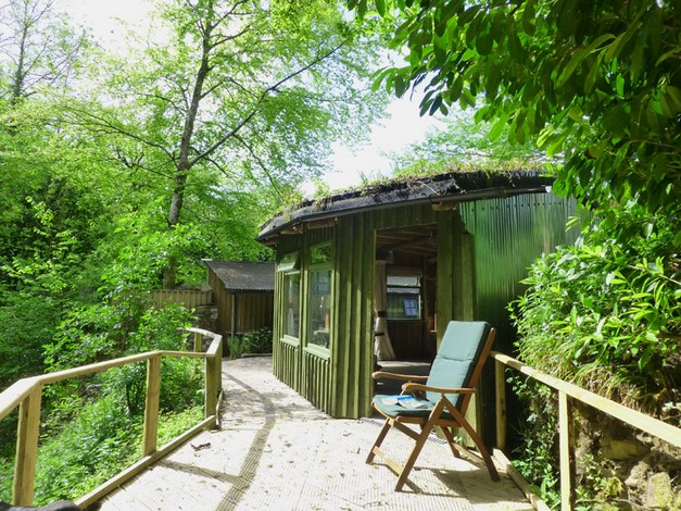 This charming spacious, rustic turf roofed woodland lodge merges into the trees overlooking a little rushing brook in the beautiful Towy Valley just a mile from Llandeilo, West Wales. It is fully equipped for 2 people with it's own private kitchen and walk in shower room (all wheelchair accessible)